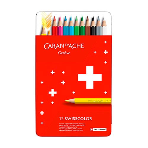 Swisscolor potloden metalen doos 12 kleuren set Caran D'Ache