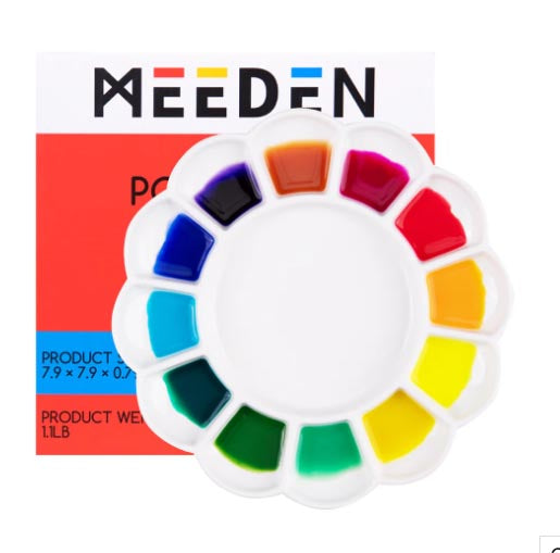 Gemakkelijk schoon te maken eco-vriendelijk keramisch porseleinen palet met 12 vakjes. Het materiaal is is erg glad en wit waardoor de ware tint van het pigment goed zichtbaar is. Geschikt voor Acrylverf, zoals bijvoorbeeld Amsterdam of Galeria, Aquarelverf , Gouache , ecoline of inkt zoals Amsterdam acrylinkt en Winsor & Newton inkt.