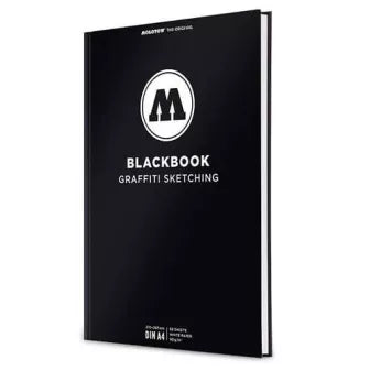 MOLOTOW ONE4ALL Blackbook Graffiti Sketching. Deze dummy (schetsboek) bevat hoogwaardig papier met een speciale coating voor verfstiften, tekenpennen en ook stiften op waterbasis, deze boekjes zijn dus heel geschikt voor Posca en Molotow acrylstiften.